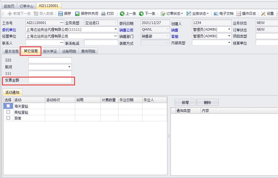 2、點(diǎn)擊訂單中心中的檢索按鈕,雙擊打開(kāi)訂單,在訂單的其它信息中可以顯示在附加數據項里維護的字段。如圖(3)