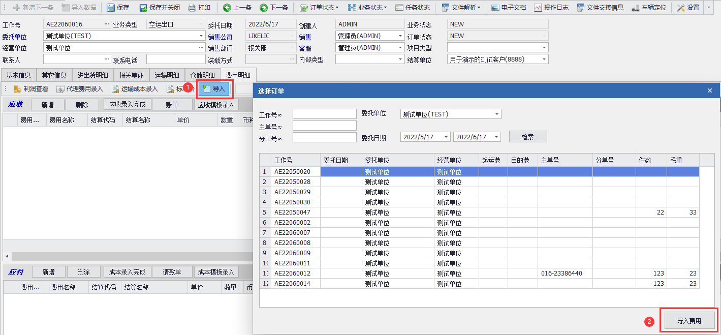 3、當前導入費用的人,能看到原訂單多少筆費用,就可以導入當前訂單多少筆費用,當事人無(wú)權查看的費用也無(wú)權導入新的訂單中。