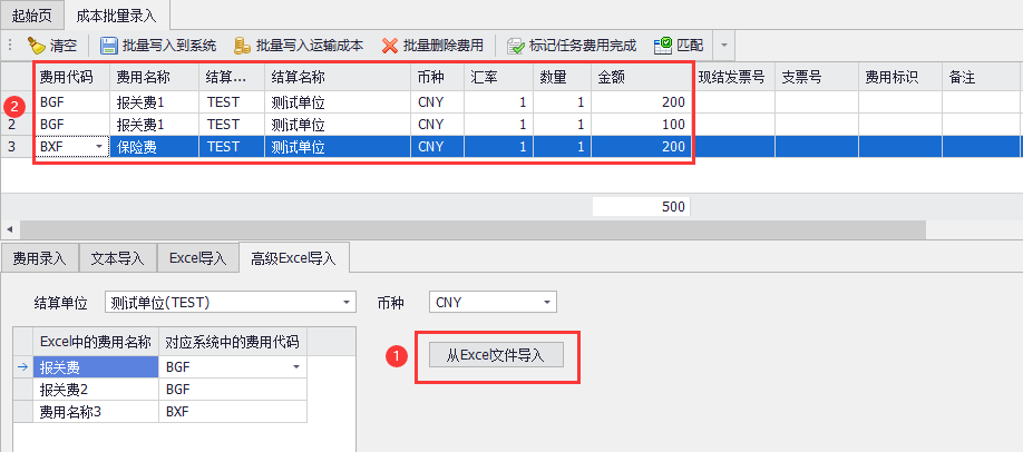 2、如圖(3)的序號1處,點(diǎn)擊:“從Excel文件導入”,選擇待導入的Excel表格,此時(shí)系統自動(dòng)讀取表格數據,將費用進(jìn)行轉換后,顯示到上方預覽;