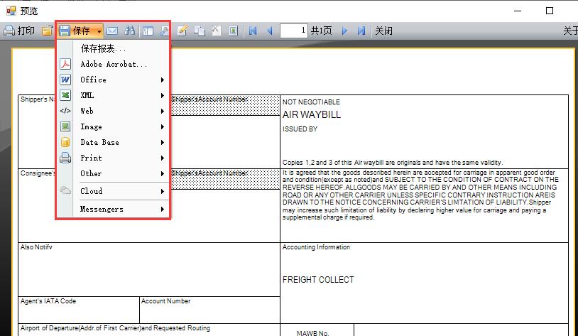 在“保存”下拉欄中還可以選擇所需的文件格式導出提單。如圖(5)