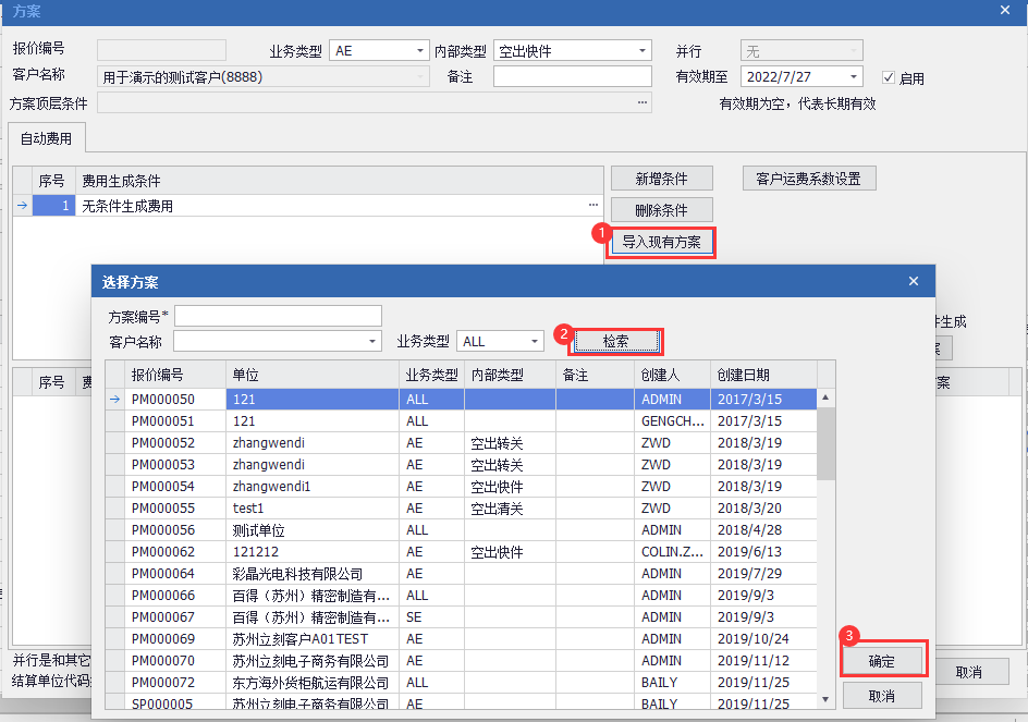 4、導入現有方案:依次點(diǎn)擊【導入現有方案】-【檢索】,選中已有方案,點(diǎn)擊【確定】;如圖(4)