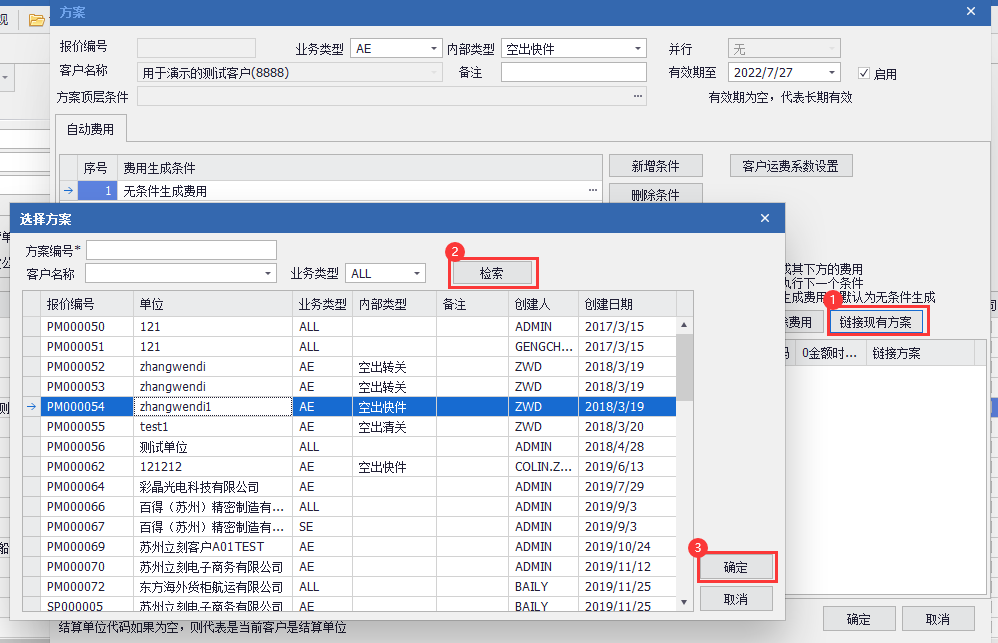 7、依次點(diǎn)擊【客戶(hù)報價(jià)方案管理】-【檢索】,可查看已有“客戶(hù)報價(jià)方案”,雙擊可打開(kāi)方案配置界面;如圖(7)