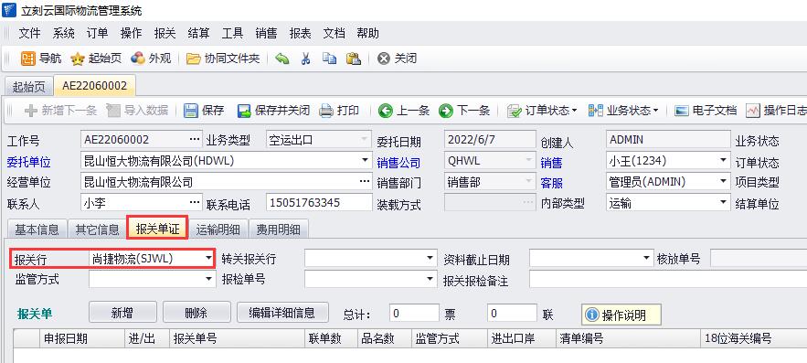 2、如圖(3),在訂單的“報關(guān)單證”界面,選擇:“報關(guān)行”是某家供應商公司;