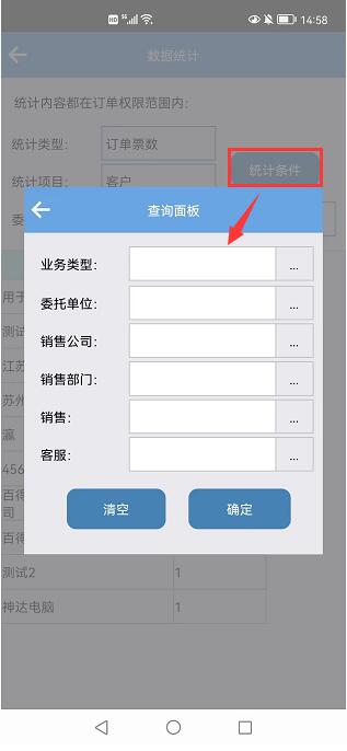 也可以點(diǎn)擊“統計條件”,設置好內容,精確統計數據。如圖(2)