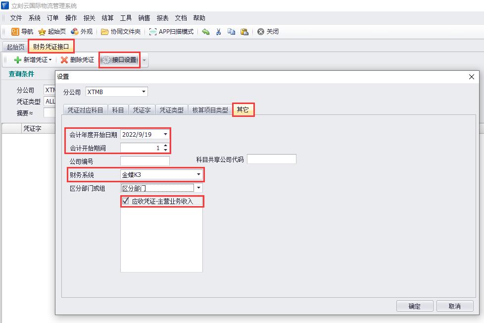 依次打開(kāi)【工具】—【財務(wù)憑證接口】,點(diǎn)擊“接口設置”,先進(jìn)入“其它”界面,根據公司具體情況設置對應的開(kāi)始日期和期間,選好對應版本的財務(wù)系統,勾上“應收憑證-主營(yíng)業(yè)務(wù)收入”,其它內容可不做設置。如圖(3)