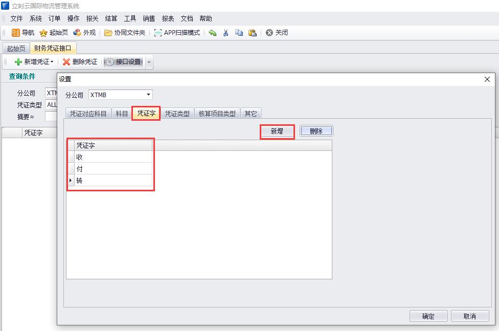 進(jìn)入“憑證對應科目”界面,新增對應的憑證類(lèi)型: