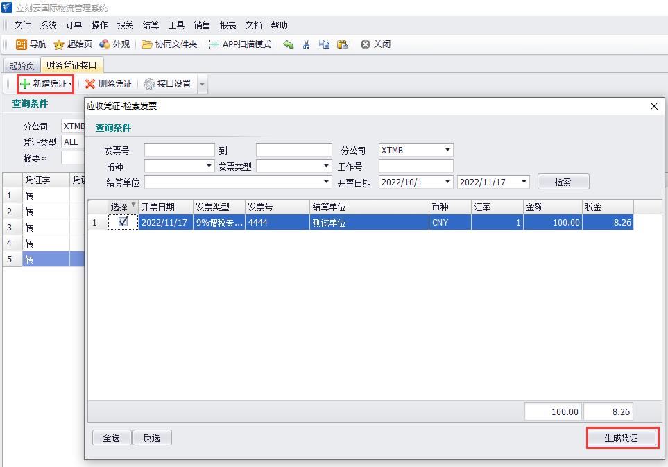 最后點(diǎn)擊【新增憑證】按鈕,以應收憑證為例,點(diǎn)擊【檢索】按鈕,選擇需要生成憑證的發(fā)票,點(diǎn)擊【生成憑證】按鈕,進(jìn)入憑證界面,點(diǎn)擊【導出標準接口文件】按鈕,即可導出憑證文件,已經(jīng)導出憑證的,導出一欄會(huì )被勾選。如圖(7)、圖(8)、圖(9)