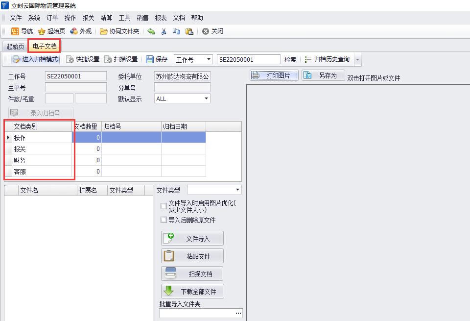 3、依次點(diǎn)擊 “文檔-電子文檔”,輸入工作號,點(diǎn)擊“檢索“按鈕,在對應的文檔類(lèi)別下添加文件資料。如圖(3)