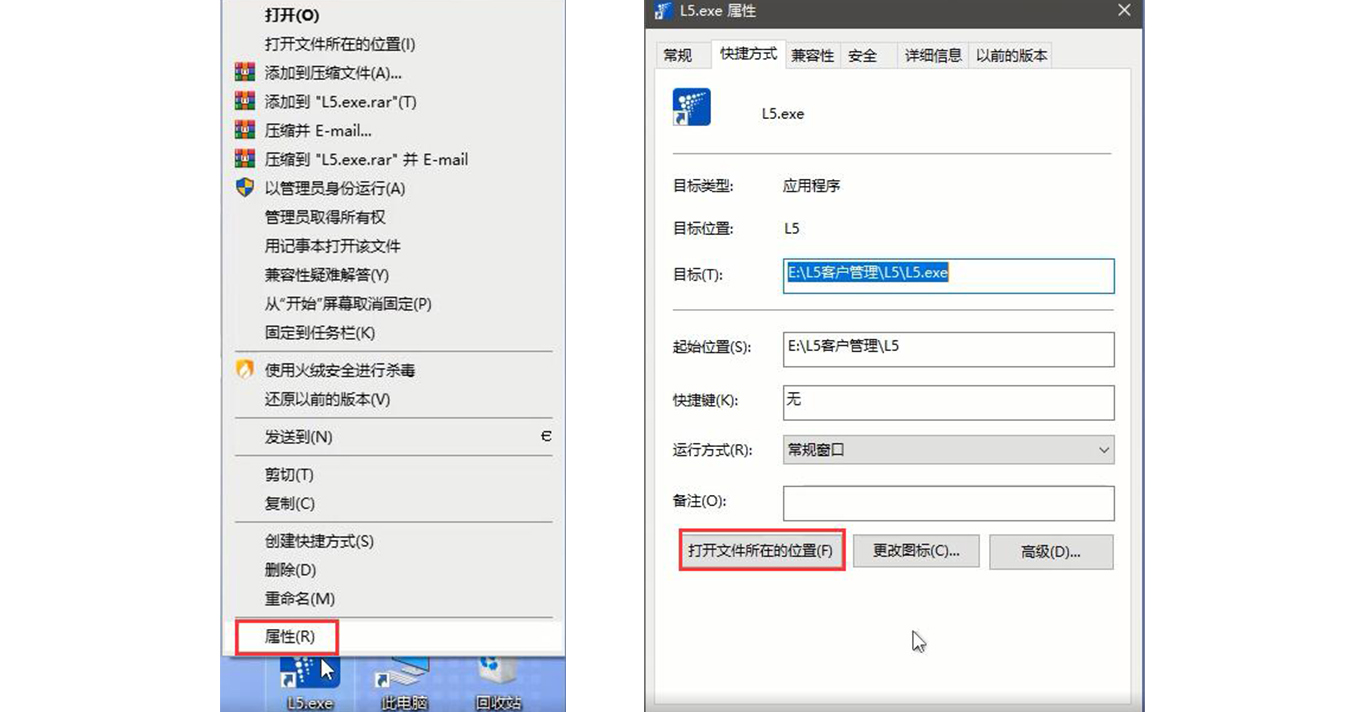 首先右擊立刻云貨代系統L5選擇“屬性”,點(diǎn)擊“打開(kāi)文件所在位置”,選擇并刪除G開(kāi)頭的xml文件,這樣就可以重新登陸系統,并正常使用。如圖(1)、圖(2)
