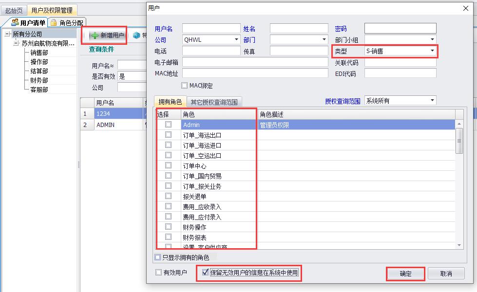 點(diǎn)擊”新增用戶(hù)”開(kāi)始新增銷(xiāo)售,新增用戶(hù)時(shí)注意,用戶(hù)名不要與系統內已有用戶(hù)產(chǎn)生重復,請注意這里的類(lèi)型,選擇銷(xiāo)售,不登錄系統的銷(xiāo)售賬號,不用分配權限,設置好后,將”有效用戶(hù)”前的勾取消,并勾上”保留無(wú)效用戶(hù)數據在系統中使用”,點(diǎn)擊”確定”,銷(xiāo)售賬號就建好了,銷(xiāo)售賬號都建好后,不要忘記把臨時(shí)取消的用戶(hù)恢復。如圖(2)