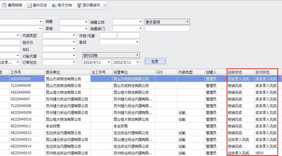在立刻云貨代系統中點(diǎn)擊【訂單】—【訂單中心】,先檢索訂單,之后直接選中多個(gè)需要鎖定費用的訂單,點(diǎn)擊上方的【批量功能】按鈕,選擇“應收錄入完成或成本錄入完成”,依次進(jìn)行訂單應收費用和應付費用的批量鎖定。如圖(1)