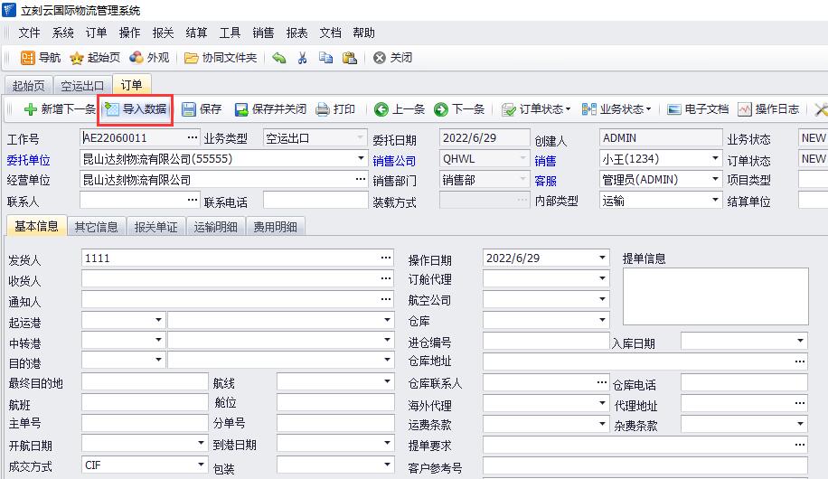立刻云貨代軟件——如何新建、復制訂單基本信息