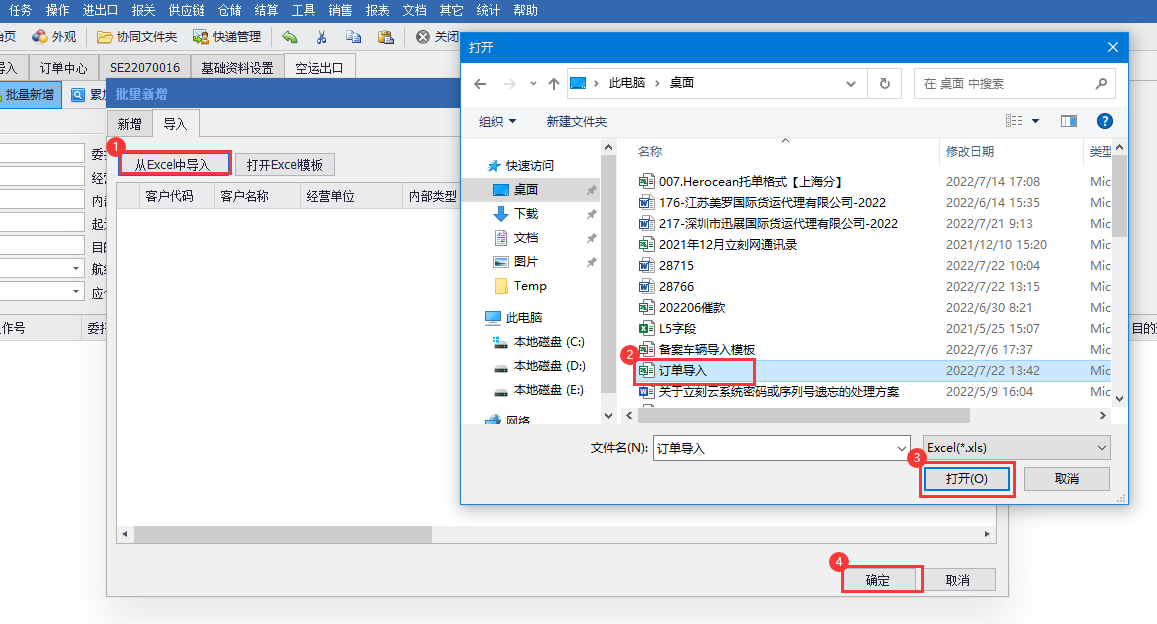 二、通過(guò)Excel模板批量導入訂單部分信息