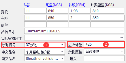 注意:當我們修改分泡情況或件毛體時(shí),系統會(huì )根據基礎數據中設置的公式,自動(dòng)計算:“應收計重”