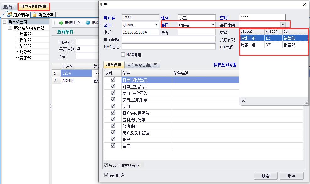 依次點(diǎn)擊【系統】-【用戶(hù)及權限管理】,點(diǎn)擊【新增用戶(hù)】按鈕,可以把此用戶(hù)具體分配到所屬部門(mén)及部門(mén)小組。如圖(3)