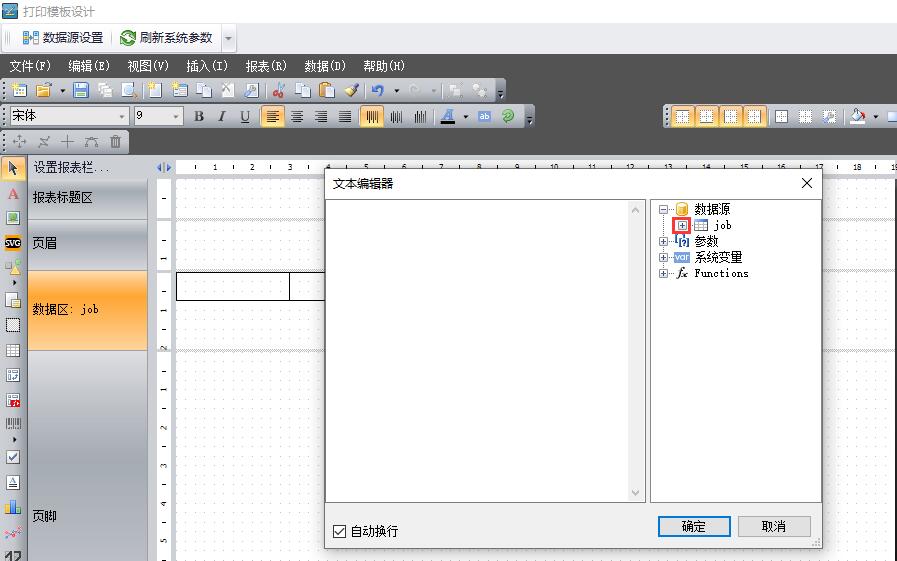 3、展開(kāi)job數據源表,然后選擇需要顯示的內容,雙擊帶入文本編輯器內