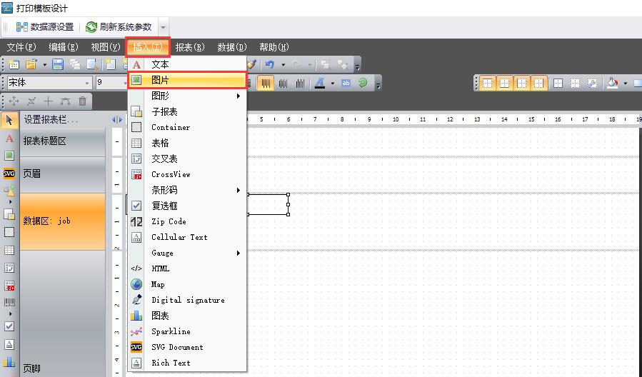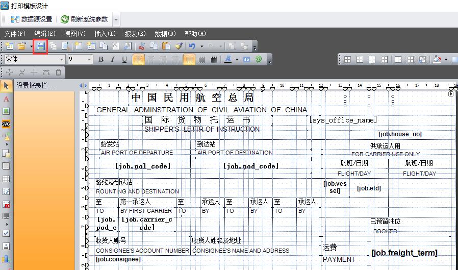 4、數據源字段大多數是英文或縮寫(xiě),其他信息中自行添加的字段,都是[job.f001]樣式