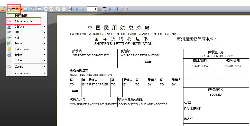 3、在空運出口訂單列表界面,選中一條訂單,點(diǎn)擊【打印】按鈕