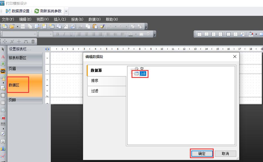 4、雙擊左側:“數據區”,然后選中“job”,點(diǎn)擊確定