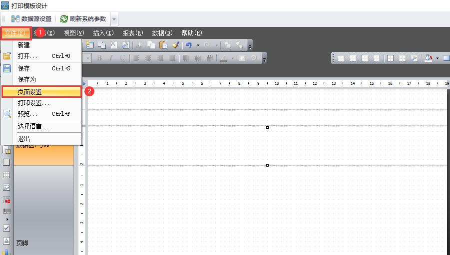 4、另外,還可以通過(guò)①【文件】-②【頁(yè)面設置】,調整模板的紙張大小和頁(yè)邊距。如圖(8)、圖(9)