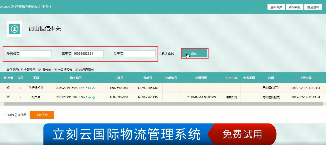 立刻云貨代軟件——報關(guān)單、放行通知書(shū)在線(xiàn)查詢(xún)(查詢(xún))
